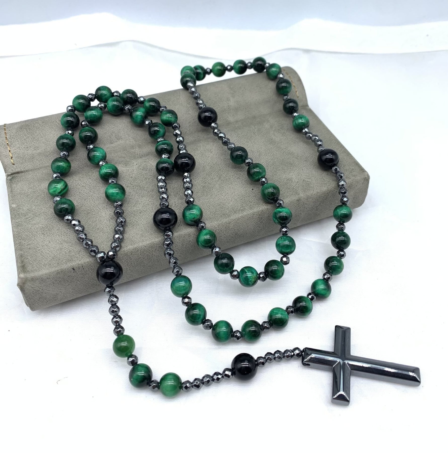 Design: Rosary-style necklace with spiritual and masculine detailing.